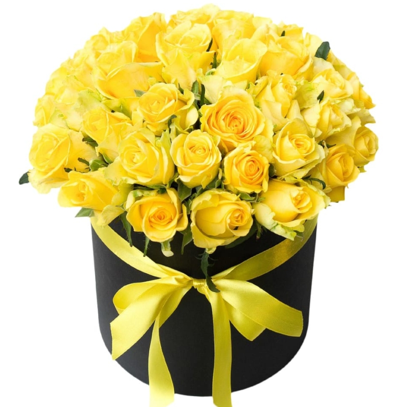 Букет состоит из 51 желтая роза, коробка.